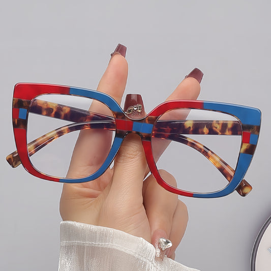 Y2K-Inspired Square Color Block Women's Glasses - Blue Light Blocking, Rainbow Spray Painted Frame with Metal Hinge & Cloth Included