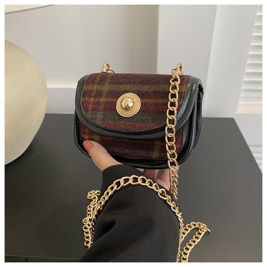 Plaid Retro Contrast Color Woolen Women's Shoulder Bag