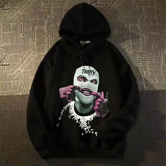 Fleece-lined Thick American Retro High Street Hooded Sweater