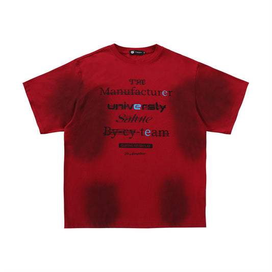 Gradient Tie-dye Letter Print Short-sleeve T-shirt