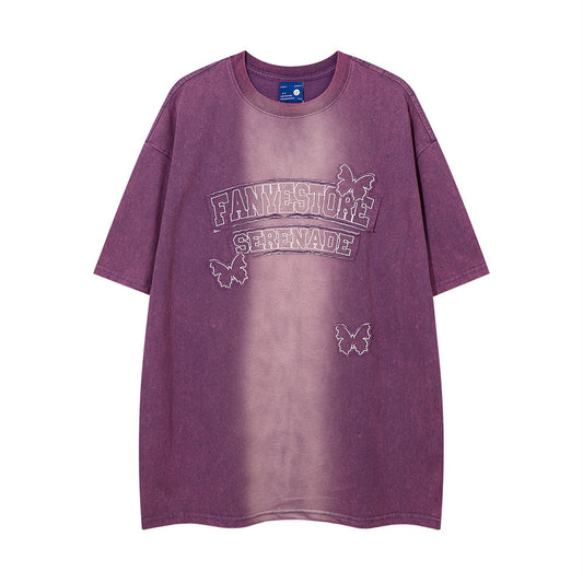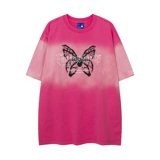 Butterfly Design Tie-dyed Washed And Worn Cotton T-shirt Tide