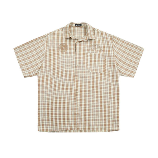 Japanese Short Sleeve Plaid Shirt Men's Summer