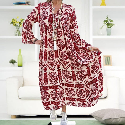 Women's Fashion Elegant Floral V-neck Plus Size Dress