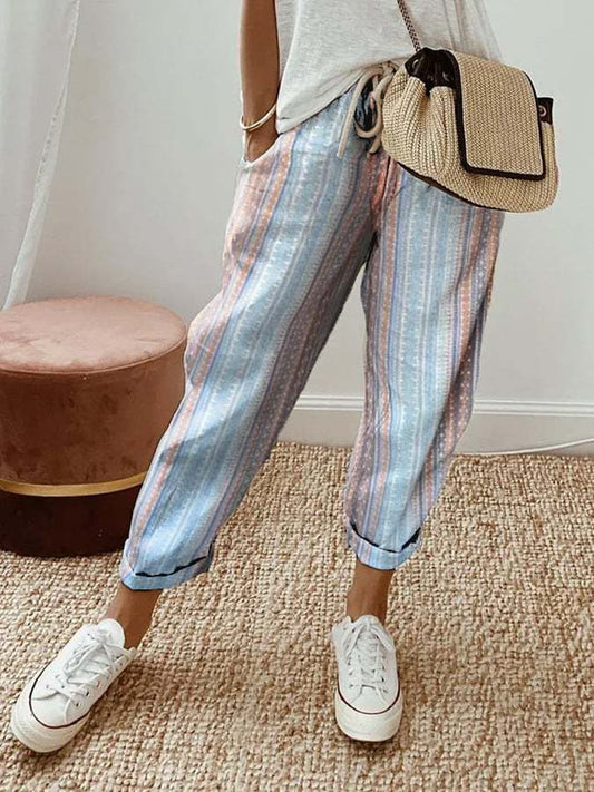 Women's Fashion Loose Casual Cotton Linen Elastic-waist Cropped Pants