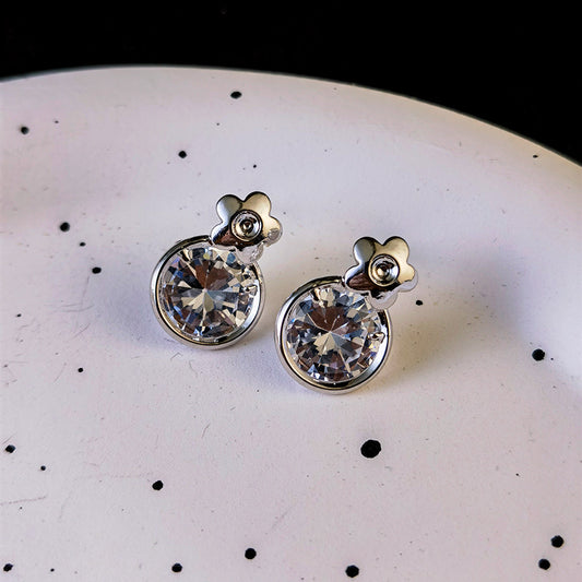 Round White Crystal Women's Sterling Silver Stud Earrings