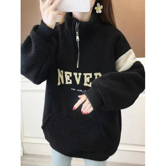 Women's Winter Thickened Velvet Padded-letter Sweater