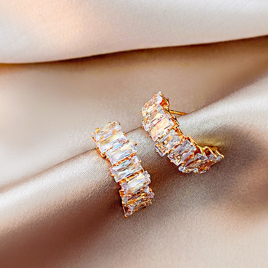 Zircon Curved Stud Earrings Women's Fashion Irregular
