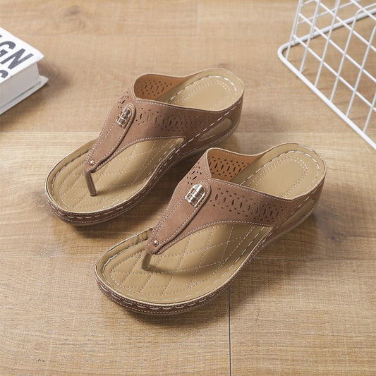 Pointed Toe Wedge Thick Bottom Toe Cap Women's Slippers