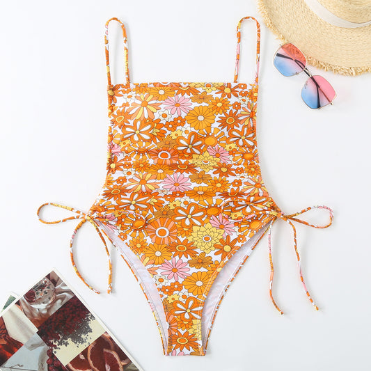 Vacation Style Drawstring Slimming Sexy One Piece Swimsuit