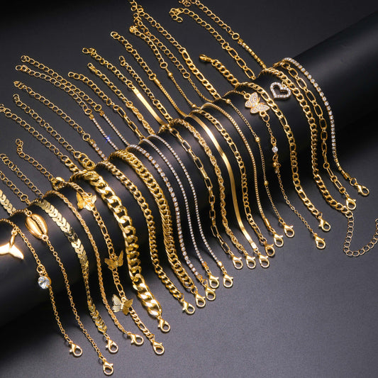 17pc Set Elegant Golden Tone Metal Chain Anklets With Butterfly, Hollow Heart & Shell Charms, Vintage Style Gift For Women, Summer Vacation & Daily Wear Accessories