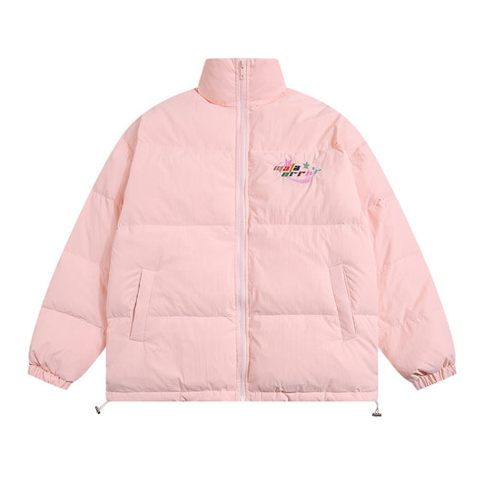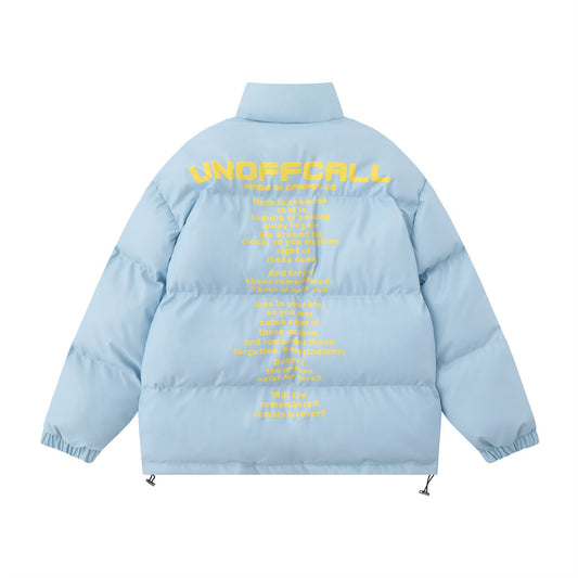 English Letters Printed Street Stand Collar Two-way Loose Zip Cotton-padded Coat