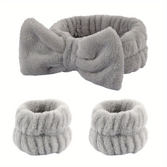 Plush Headband, Elastic Wristbands Wrist Cuffs, Spa Makeup Headwrap, Facial Wash, Yoga Sports Headband, Bath Accessories